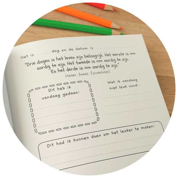 Het dagboek staat vol met inspirerende citaten en doordachte vragen waardoor het voor kinderen makkelijk en leuk wordt om over hun leven na te denken. Het is een krachtig instrument om het zelfbewustzijn van onze kinderen te vergroten.